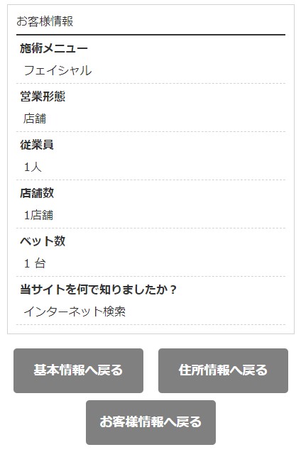 ●内容を確認していただき、修正があれば各ボタンから入力画面に移動します。